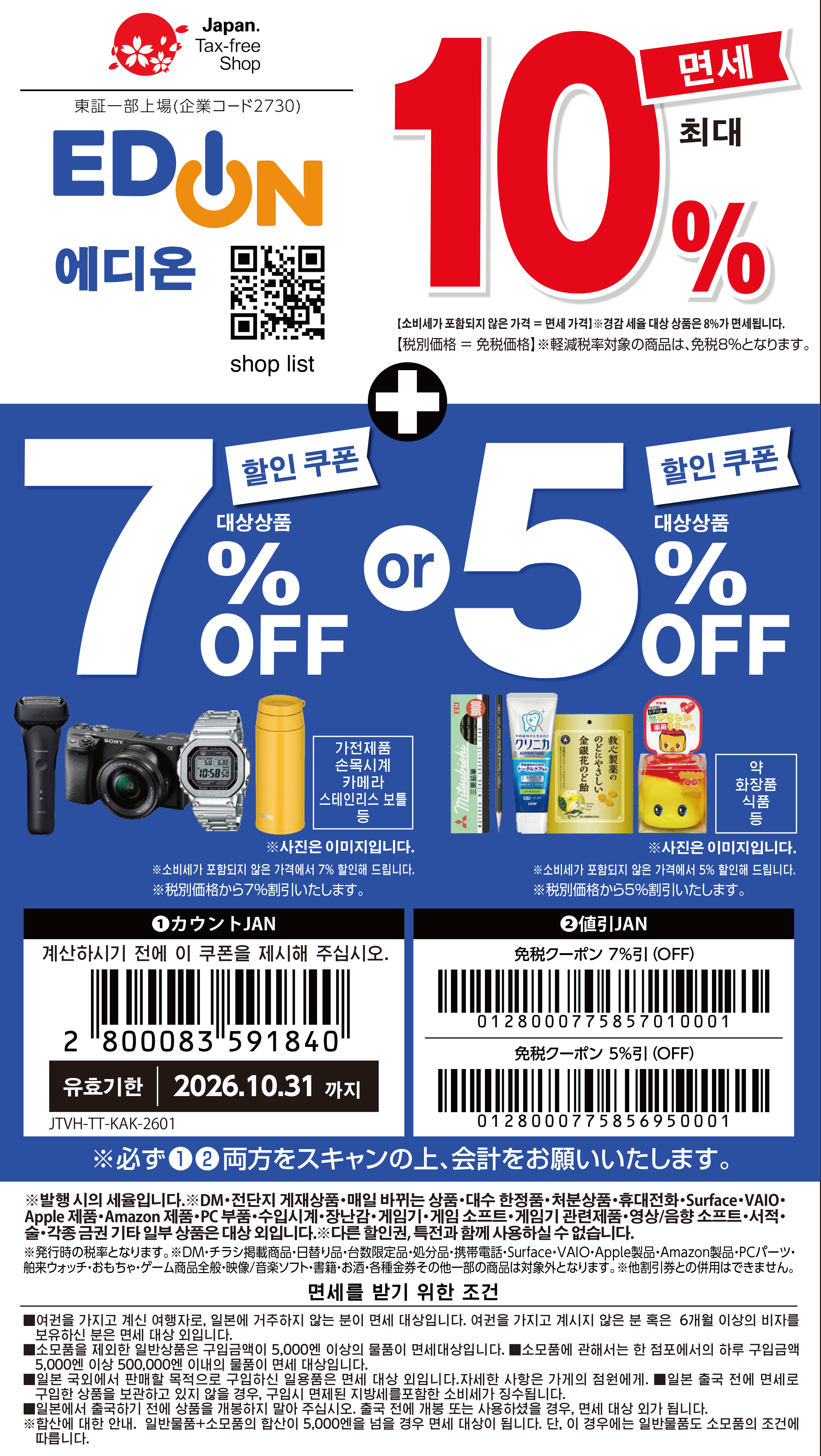 - 일부 제외 상품 있음 (Apple 제품, VAIO 제품, Amazon 제품, 손목시계, 휴대전화, 게임 소프트웨어, 전단지 게재 상품, PC 부품 등은 제외)