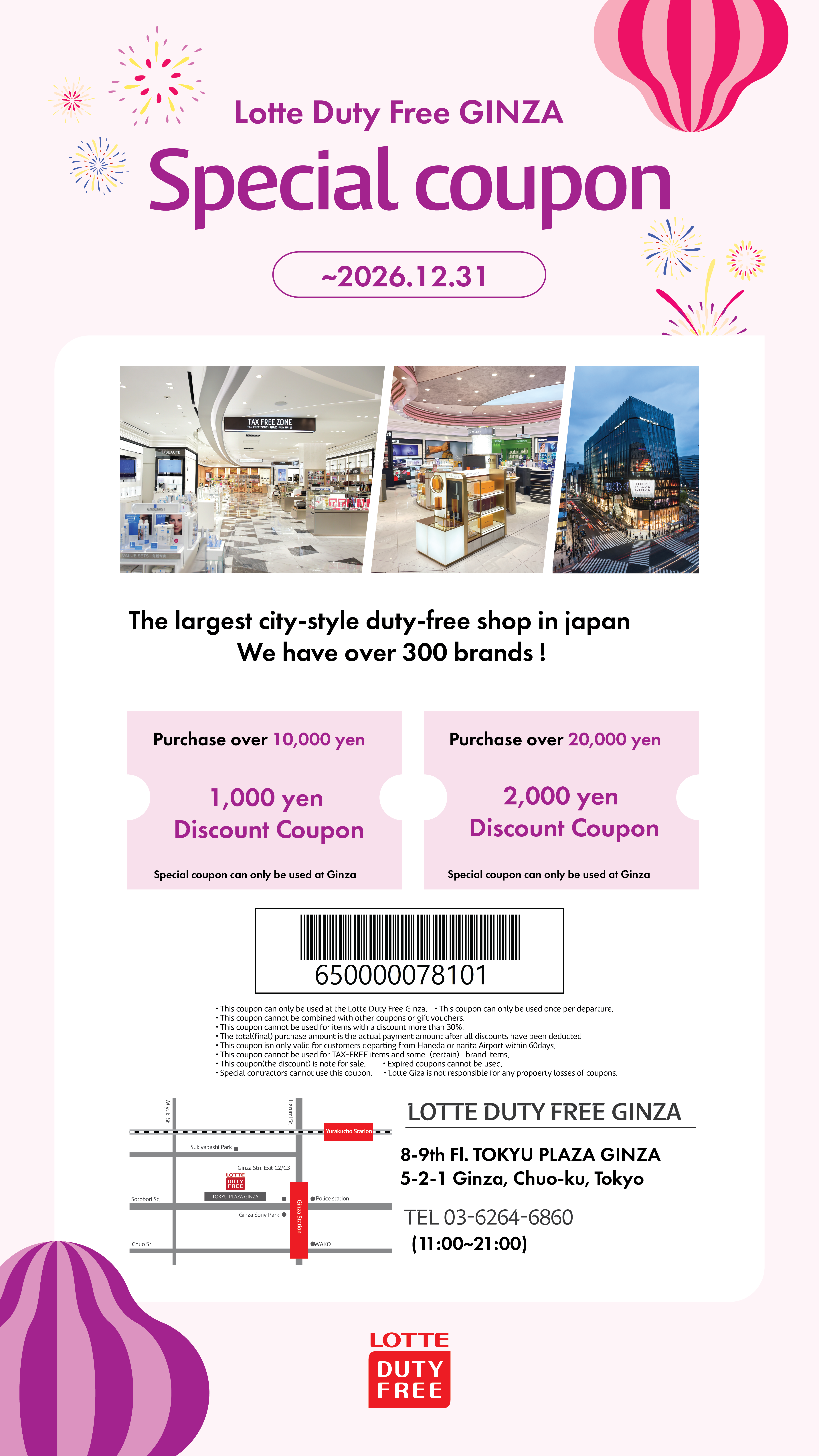 - 이 쿠폰은 롯데면세점 긴자에서만 사용 가능합니다.