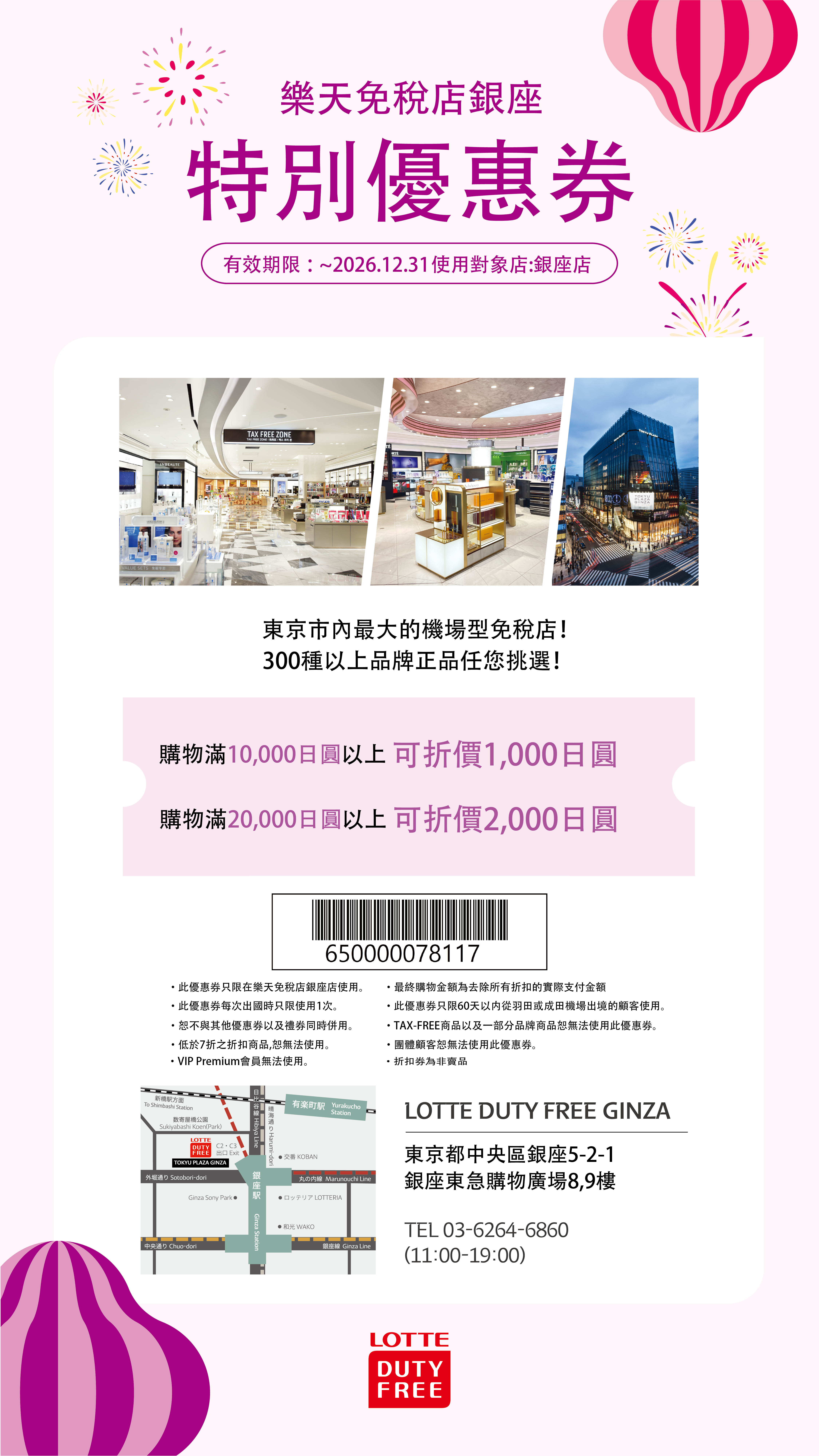 - このクーポンは、ロッテ免税店銀座でのみご利用いただけます。