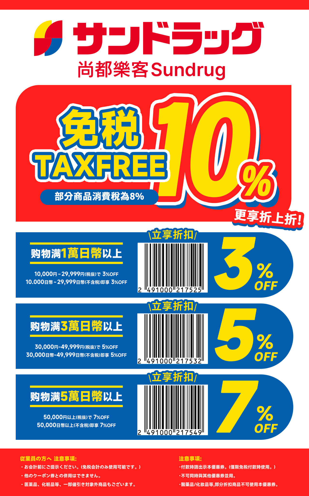 - 結帳前請出示優惠券(僅限免稅結帳時使用)